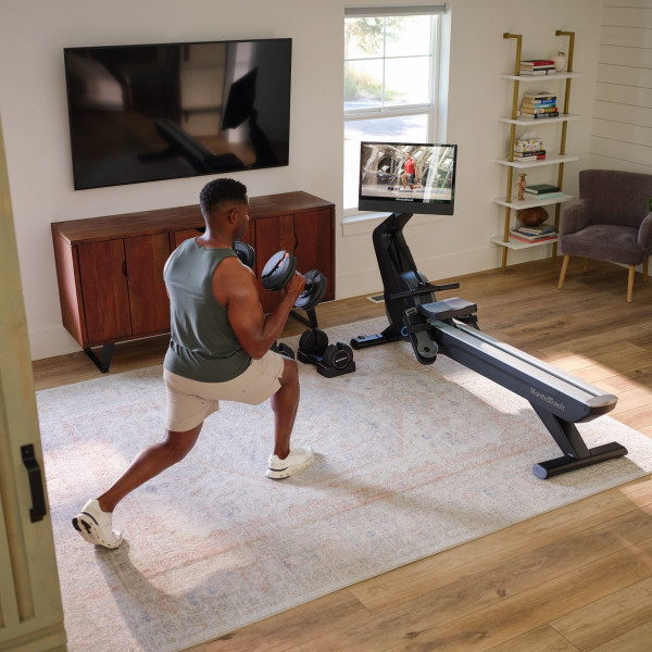 El remo NordicTrack RW900 destaca por su diseño discreto, componentes de alta calidad y una sensación de remo realista. Es especialmente estable, lo que permite realizar sesiones de entrenamiento intensivas de forma segura y cómoda. Tras el entrenamiento, se puede mover fácilmente para ahorrar espacio gracias a las ruedas de transporte integradas. La gran pantalla del RW900 permite controlar el progreso y consultar datos como la distancia recorrida, el tiempo de entrenamiento, las remadas por minuto y la potencia (vatios). La pantalla también ofrece conectividad inalámbrica, lo que permite conectar auriculares o una banda pectoral. Entrenamiento efectivo de cuerpo completo en casa.