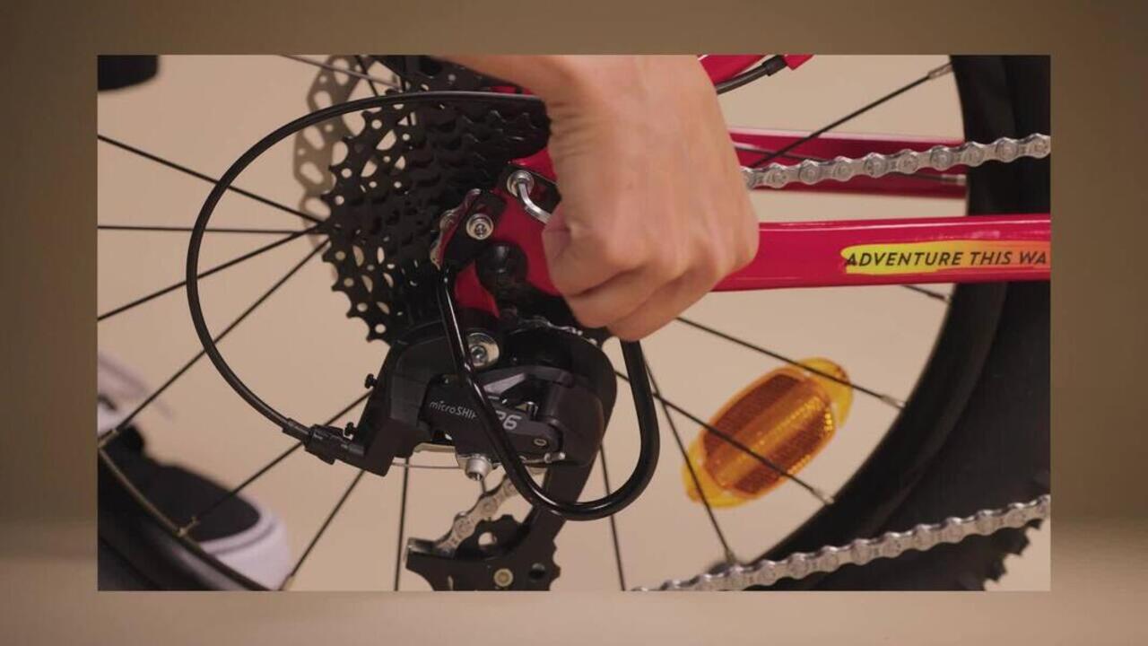 Concernant les éléments de transmission, notamment la roue libre et le dérailleur, les photos ou vidéos présentes sur la fiche descriptive du vélo laissent apparaitre un modèle spécifique de dérailleur et de roue libre. Cependant, pour des raisons de difficulté d’approvisionnement, le vélo peut être équipé d’un dérailleur et d’une cassette équivalent d’une autre marque.